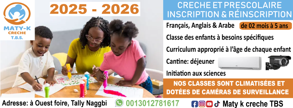 Madame Maty Abdoul Aziz Mbaye fondatrice et directrice de Maty-K Crèche TBS est une experte reconnue en éducation de la petite enfance.